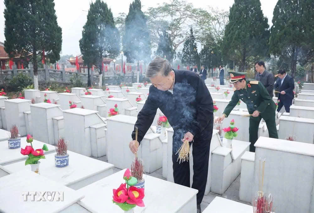 Chiều 5.2, đồng chí Tô Lâm, Tổng Bí thư BCH Trung ương Đảng Cộng sản Việt Nam cùng Đoàn công tác Trung ương đã đến viếng các Anh hùng liệt sỹ tại Nghĩa trang Liệt sỹ Vị Xuyên.