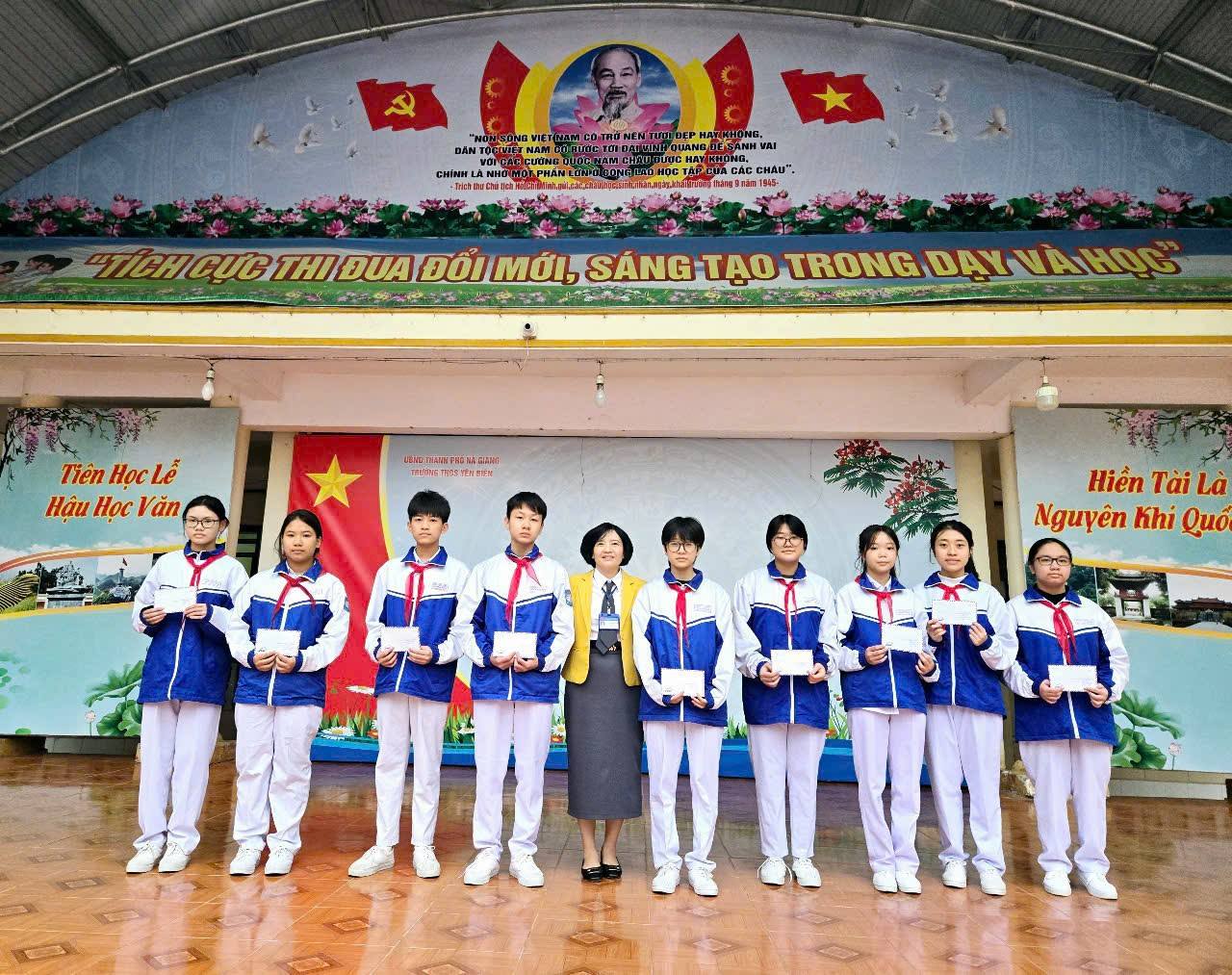 Để khuyến khích việc học tập và phát triển tài năng các môn học hiện hành, Sáng ngày 03 tháng 03 năm 2025, Trường THCS Yên Biên TP Hà Giang đã tiến hành khen thưởng cho 09 học sinh xuất sắc là những HS đạt giải Nhất, giải Nhì trong tổng số 49 HS đạt giải trong kì thi năm nay.