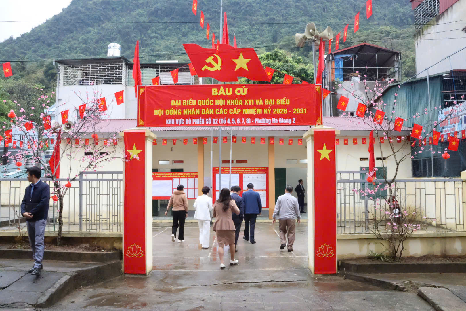 Tại khu vực bỏ phiếu số 5 Minh Khai, phường Hà Giang 2 cử tri đến tham gia bỏ phiếu rất sớm và đông đủ. Đúng 6giờ 45 phút chương trình khai mạc cuộc bầu cử đại biểu Quốc hội XVI và HĐND các cấp nhiệm kỳ 2026 – 2031 chính thức bắt đầu. Tham dự chương trình khai mạc có đồng chí Vàng Seo Cón, ủy viên BTV Tỉnh ủy, Bí thư Đảng ủy – Chủ tịch HĐND phường Hà Giang 2; các đồng chí nguyên lãnh đạo tỉnh qua các thời kỳ cùng đông đảo các bậc cử tri.