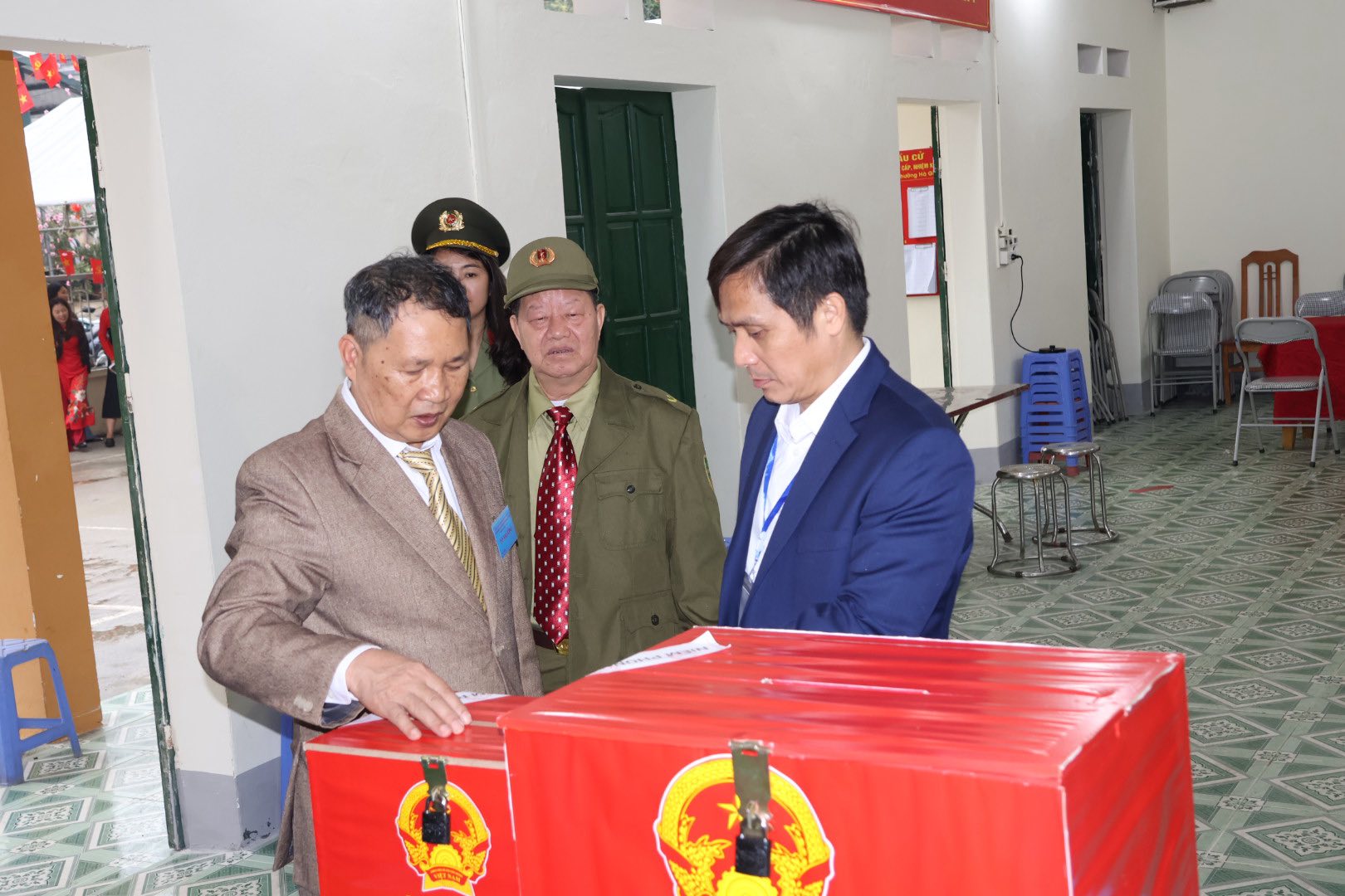 Bí thư Đảng ủy Vàng Seo Cón kiểm tra các điểm bầu cử