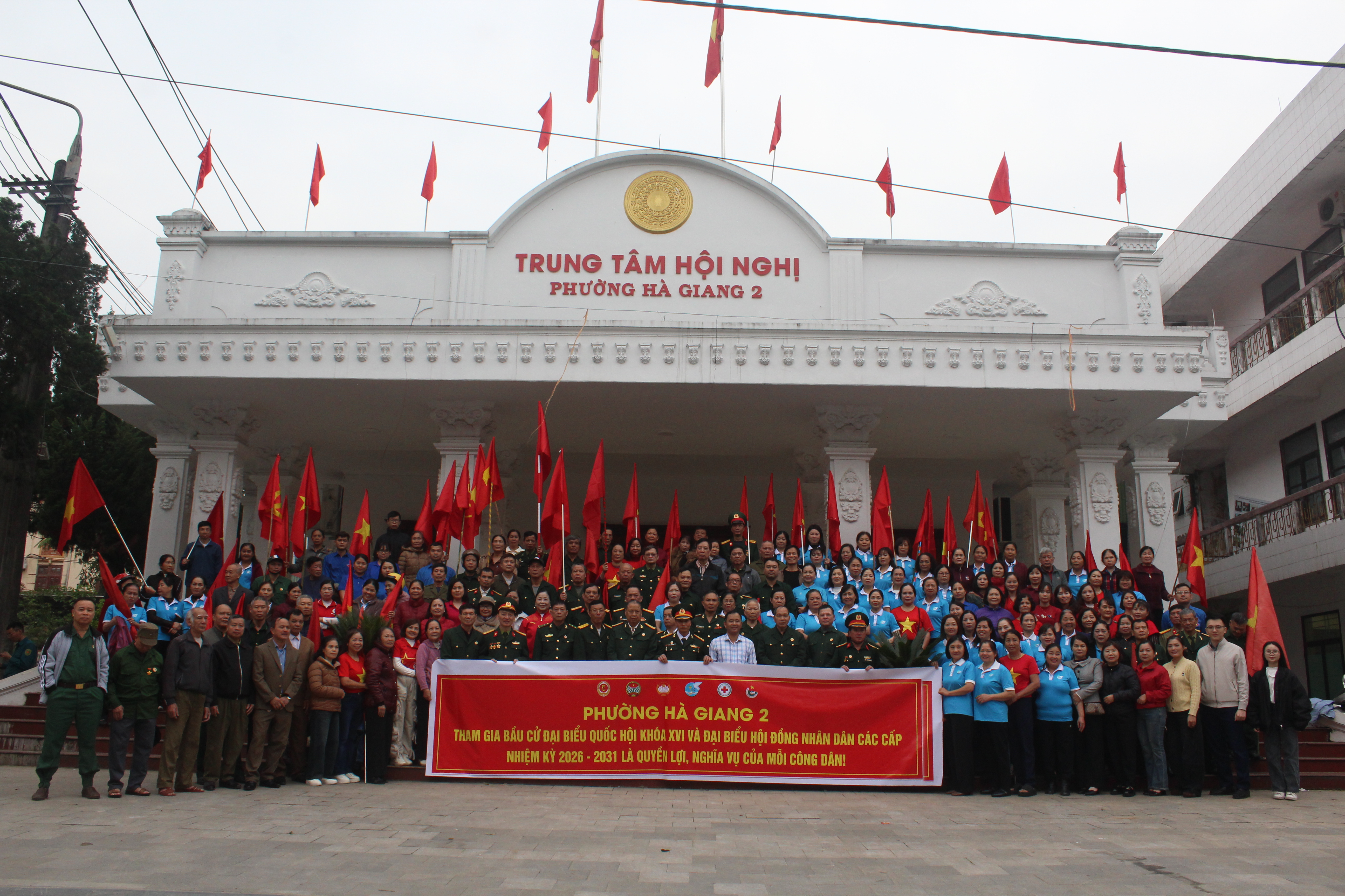 Những ngày này, trên khắp các tuyến phố, khu dân cư của phường Hà Giang 2, không khí chuẩn bị cho cuộc bầu cử đại biểu Quốc hội khóa XVI và đại biểu Hội đồng nhân dân các cấp nhiệm kỳ 2026–2031 đang diễn ra khẩn trương, nghiêm túc nhưng cũng rất phấn khởi. Từ trụ sở phường đến các tổ dân phố, các khu vực bỏ phiếu đều được trang trí cờ, băng rôn, khẩu hiệu rực rỡ, tạo nên không khí trang trọng hướng về ngày hội lớn của toàn dân.